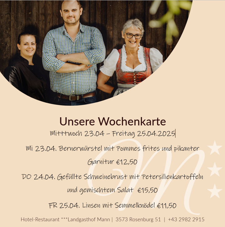 Schicken Sie bitte Ihre Reservierung an doris@landgasthof-mann.at
